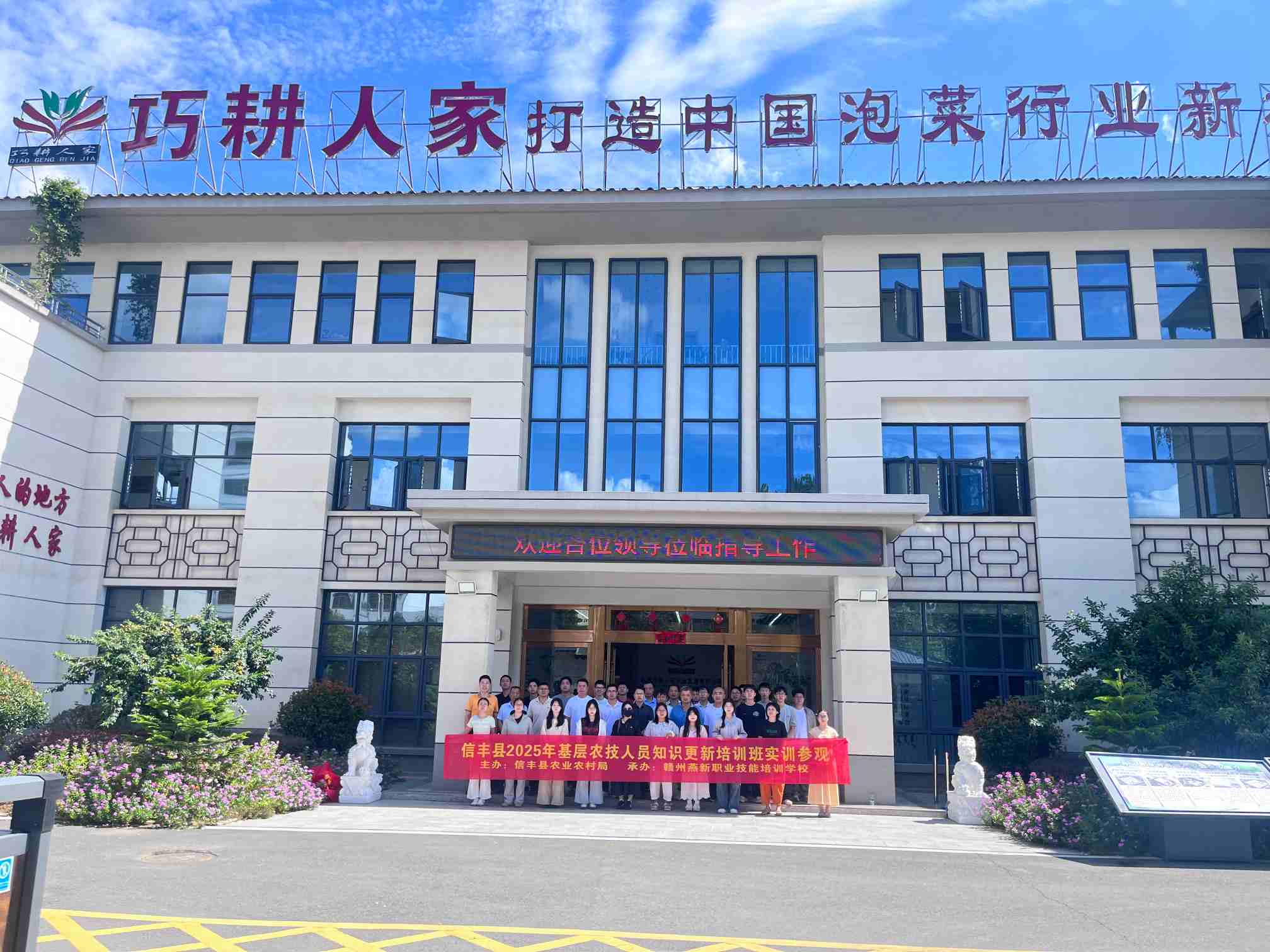 現(xiàn)場教學(xué)環(huán)節(jié)更是讓學(xué)員們直呼 “收獲頗豐”。在學(xué)校的精心安排下,學(xué)員們先后走進(jìn)多家知名農(nóng)業(yè)企業(yè)和示范基地,近距離學(xué)習(xí)先進(jìn)技術(shù)和管理經(jīng)驗:在贛州巧耕人家農(nóng)業(yè)發(fā)展有限公司,大家深入蔬菜種植基地和加工廠,詳細(xì)了解農(nóng)產(chǎn)品加工與銷售流程,重點學(xué)習(xí)了乳酸菌發(fā)酵菜腌制工藝技術(shù),掌握了提升蔬菜附加值的實用方法;在尋烏縣羊角園果蔬有限公司,學(xué)員們實地考察特色農(nóng)業(yè)種植模式,學(xué)習(xí)了特色果蔬品種選育、高效栽培等先進(jìn)技術(shù);在江西果然食品有限公司和安遠(yuǎn)縣橙皇現(xiàn)代農(nóng)業(yè)發(fā)展有限公司,大家聚焦農(nóng)產(chǎn)品加工技術(shù)與品牌營銷,探索了從 “田間” 到 “餐桌” 的產(chǎn)業(yè)鏈打造路徑;在中國贛南臍橙產(chǎn)業(yè)園(安西)及柑橘農(nóng)業(yè)科技示范基地,學(xué)員們沿著贛南臍橙的發(fā)展歷程,學(xué)習(xí)了臍橙標(biāo)準(zhǔn)化種植、病蟲害綠色防控等先進(jìn)技術(shù),深刻感受到特色產(chǎn)業(yè)對鄉(xiāng)村振興的帶動作用;在中科微至&江西綠萌智能裝備(華南)制造中心項目現(xiàn)場,大家參觀了果蔬采后處理設(shè)備、設(shè)施農(nóng)業(yè)裝備生產(chǎn)基地,直觀了解了智能裝備在農(nóng)業(yè)生產(chǎn)中的應(yīng)用,認(rèn)識到科技賦能農(nóng)業(yè)的重要性;最后,在信豐金海農(nóng)業(yè)服務(wù)專業(yè)合作社糧油基地,學(xué)員們學(xué)習(xí)了糧油作物主導(dǎo)產(chǎn)業(yè)主推技術(shù),為今后開展糧油生產(chǎn)技術(shù)推廣工作奠定了堅實基礎(chǔ)。