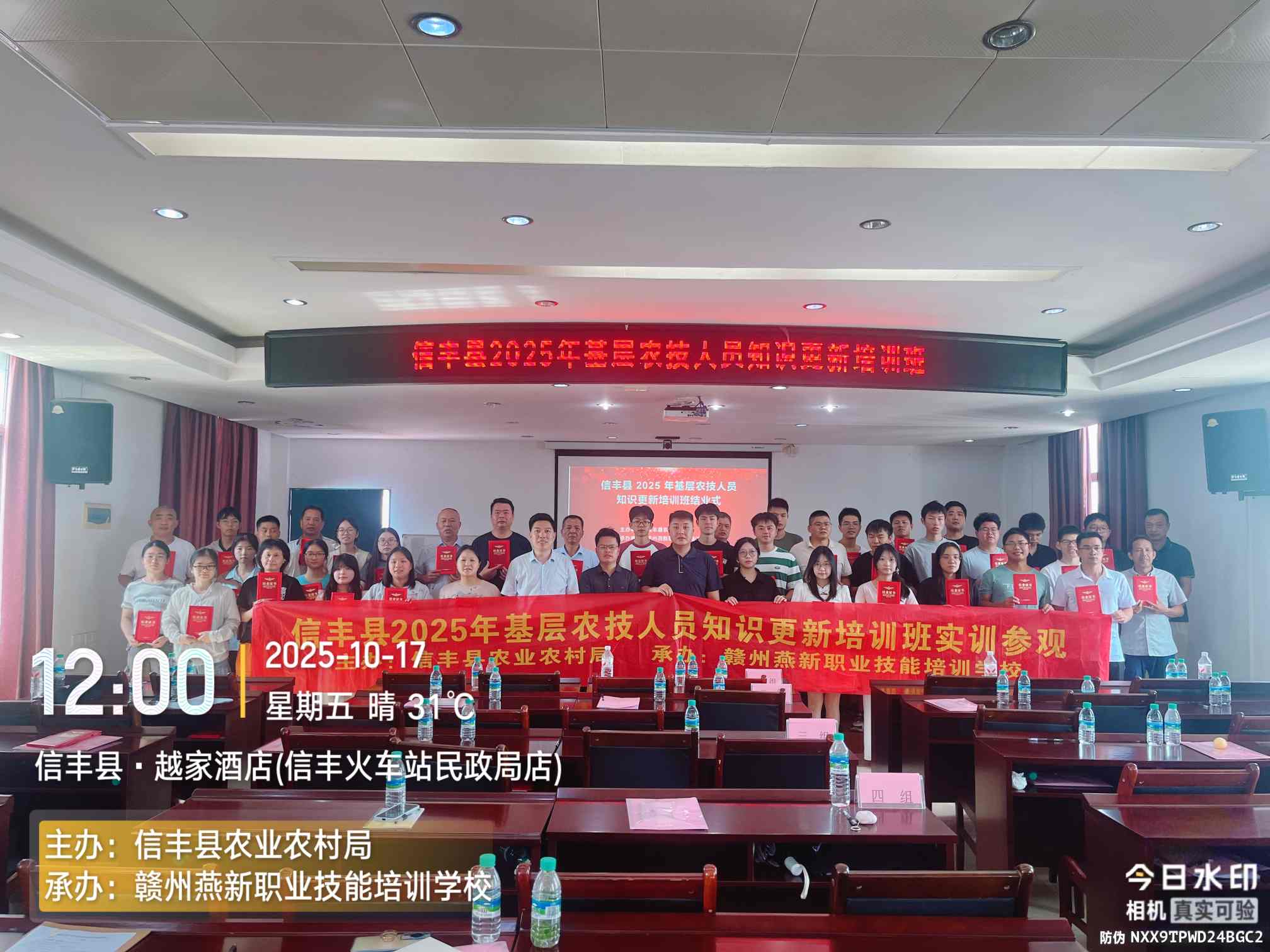2025 年 10 月 13 日至 17 日,一場為期 5 天的基層農(nóng)技人員知識更新培訓(xùn)班在信豐縣順利開展并圓滿收官。本次培訓(xùn)由贛州燕新職業(yè)技能培訓(xùn)學(xué)校精心組織,不僅為當(dāng)?shù)剞r(nóng)技推廣人員搭建了專業(yè)提升的平臺,更成為推動信豐縣農(nóng)業(yè)高質(zhì)量發(fā)展、助力鄉(xiāng)村振興的生動實踐。